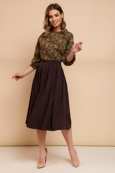Фото товара 21156, темно-коричневое платье с принтованным верхом